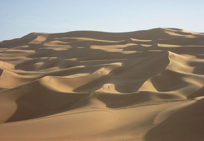 阿拉伯半岛的鲁布哈利沙漠:这座沙漠覆盖了阿拉伯半岛三分之一的面积,它是世界上最大的连续荒漠。这里的气候干燥而炎热,温度能够达到133华氏度,而且这里每年的降雨不足3厘米。