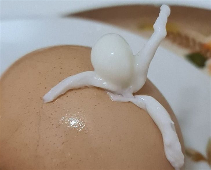 6. 这颗水煮蛋就像有人在爬出来求救一样。