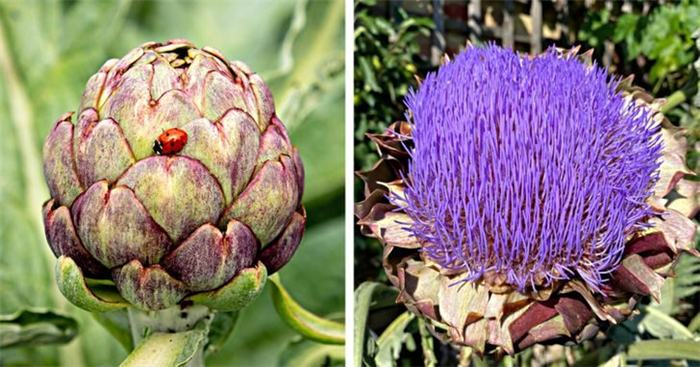 2. 蔬菜之皇“朝鲜蓟”开花的样子。