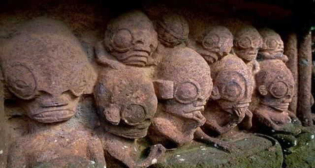 第一眼会觉得它们似乎是“大雕像”,但更靠近地检视后,显示出有趣的细节:大眼、细长的大头、小身体或大身体,还有其他怪异的外观特征,会让你好奇,是什么东西激发艺术家的灵感,使他们刻出这样的非人特征?