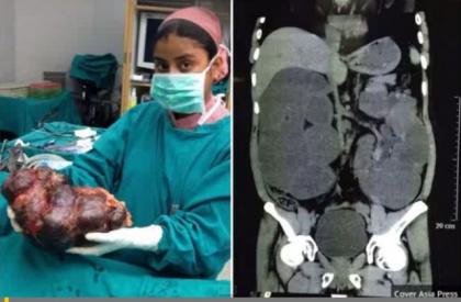 印度一男子肾重达5千克,一侧的重2.7千克,另一侧重2.5千克。而正常成年人的肾重达125—170克。男子的肾脏之所以这么大,是因为他患有一种叫做ADPKD(常染色体显性多囊肾病)的病。常染色体显性多囊肾即正常肾组织被无数小囊所代替,外形似一串葡萄,有时囊间有岛状正常组织。本病分为4型:常染色体隐性多囊肾;肾发育不良;常染色体显性多囊肾;尿道梗阻多囊肾。此病多表现为季肋部疼痛、腹痛、胃肠道症状,可有肉眼血尿,由于浓缩功能障碍有夜尿。部分患者因肾结石和血块梗阻可引起肾绞痛。此男子比较严重,发现的时候需摘除肾脏,而摘下的肾脏竟是出奇的大!