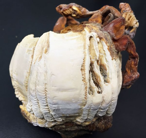 最新研究表明,藤壶甲壳中氧同位素的模式或许能为揭示鲸类的迁徙路径提供帮助,例如这枚从阿拉斯加搁浅的鲸身上收集到的藤壶。
