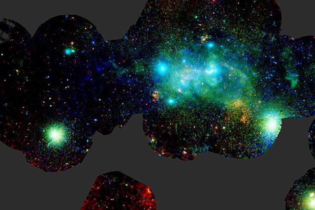 银河系中央附近距离我们大约2.7万光年,这里恒星数量庞大,因此垂死的恒星数量也非常多。牛顿X射线空间望远镜对恒星集群进行了深入观测,揭示出周围气体的运动轨迹,恒星群释放出强大的X射线,创造出巨大的气体柱、尘埃和等离子体流等。通过X射线的观测,科学家可以得知哪些恒星进入了生命的终结期,大量吸积伴星的结果就会导致强烈的X射线释放。