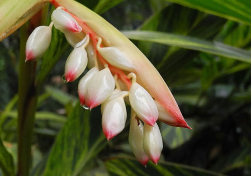 长得也很普通,为何会变为形容女子的词了呢?说到这个就要说到我国的大诗人杜牧了,因为杜牧写了一首诗“娉娉袅袅十三余,豆蔻梢头二月初。”这里是用农历二月“豆蔻”的嫩梢比喻十三四岁的少女。那如果这样说,我们就查查看二月初的豆蔻长什么样子了。农历的二月也就是大概公历四月左右,这时各种植物都处在生长期,而豆蔻也刚抽出花苞。所以,这里的“梢头”应指花苞,而不是嫩叶。好,那么最激动人心的时刻来了,这关键性的花苞到底长啥样?我们来看艳山姜的(草豆蔻也差不多长这样):