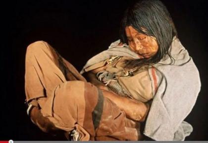 在安第斯山脉发现了作为祭神用的少女的木乃伊。安姆帕托,印加的神山,是一座海拔20,700英尺的火山。印加人用最珍贵的东西,也就是生命作为祭品,祈求它赐予生命之水、带来谷牧丰收。这位印加少女就是500年前,一次印加祭礼中的祭品。她安眠在陶土的墓穴中,没有任何挣扎的痕迹,或许她在被埋入之前就已经死去、或许她在被埋入之前失去了意识。墓穴中,随她一起入葬的还有精致的小雕像,古柯叶和谷物。科学家还给她起名为胡安妮塔。
