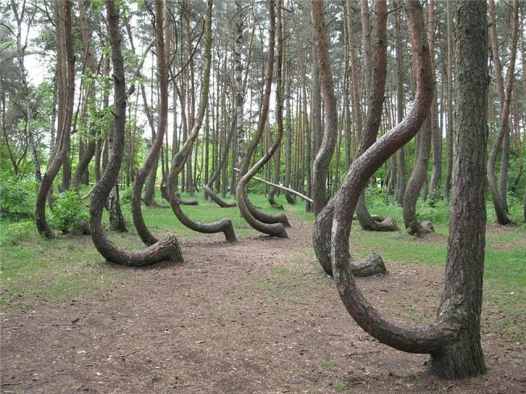 俄罗斯加里宁格勒 (Kaliningrad) 的国家公园中,有许多造型独特的树,当地人把这片森林称为“跳舞森林”,许多植物学家与科学家们都会特地前来研究树干扭曲原因。