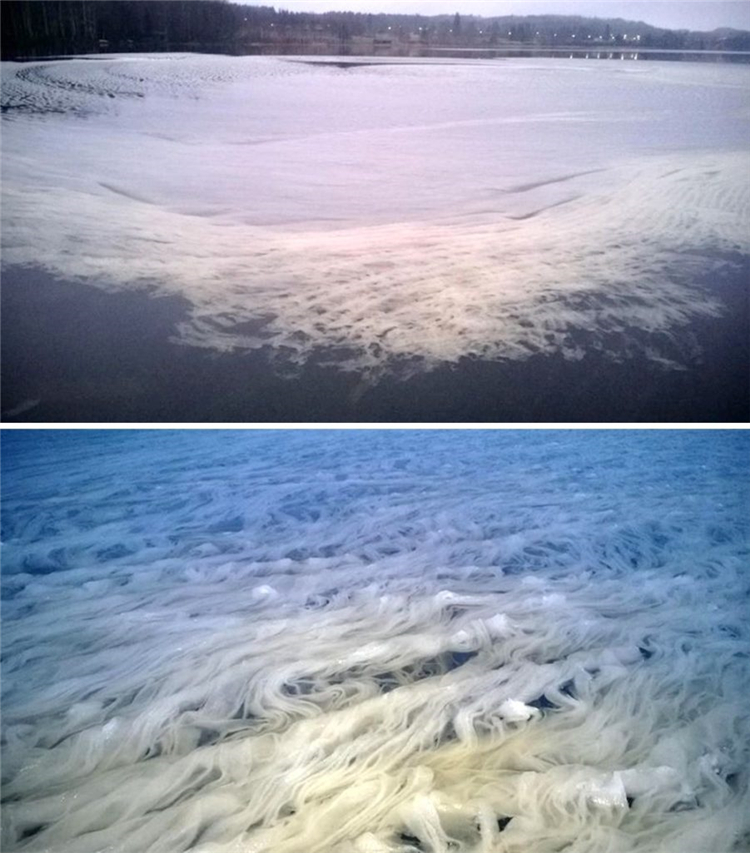 4. 芬兰一座湖上出现像“雪”做的意大利面。