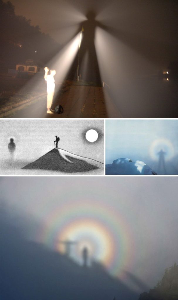 是一种阳光透过云雾反射,并经由云雾中的水滴发生绕射与干涉,最后形成一圈彩虹光环的光学现象,在光环中经常包括观察者本身的阴影。