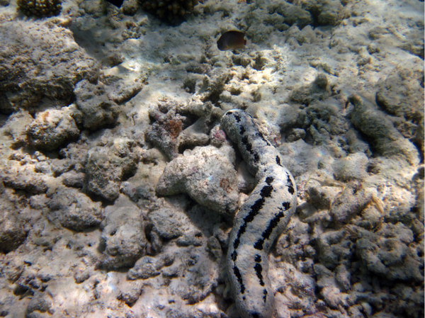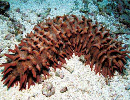遇到难缠的敌人,海黄瓜像它的那些亲戚,就会把自己的内脏从肛门挤出来,抛给对手,自己逃之夭夭。可是没了消化器官,它怎么消化食物呢?这下可说到恶心之处了,原来它还可以从肛门进食。