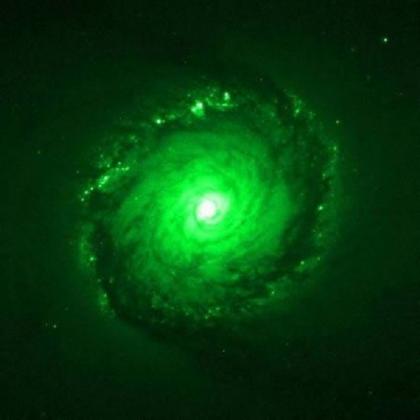 星系NGC 3370 是一个充满尘埃的螺旋星系,位于狮子座里,距离地球大约9800万光年。星系NGC 3370的中心分布着轮廓鲜明的尘埃带和一个不太容易辨认的核。1994年,星系NGC 3370里的一颗Type Ia sypernova发生爆炸。
