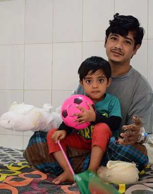 阿布‧巴詹达历经16次手术,来移除手和脚上的肿瘤。