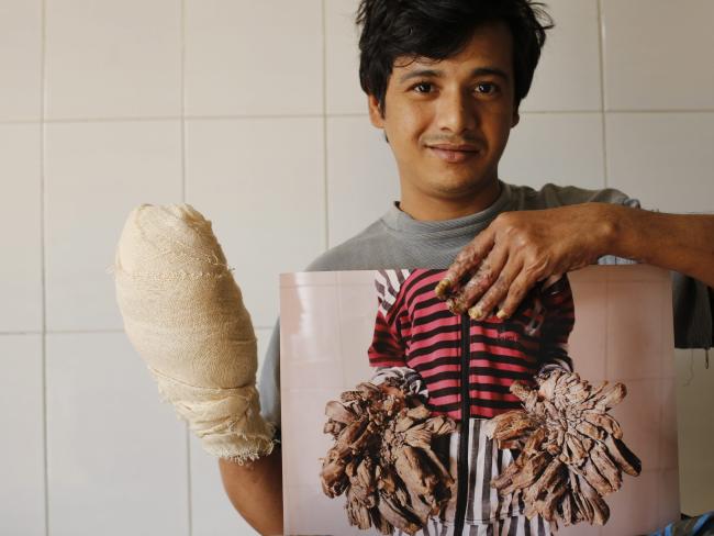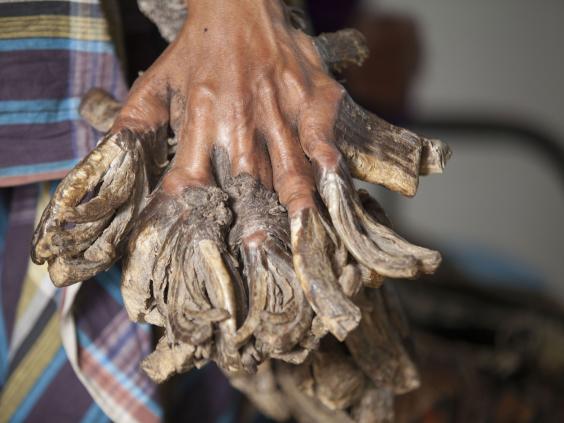 阿布‧巴詹达(Abul bajandar)受苦于疣状表皮发育不全症(epidermodysplasia verruciformis)。MUNIR UZ ZAMAN/STRINGER/GETTY