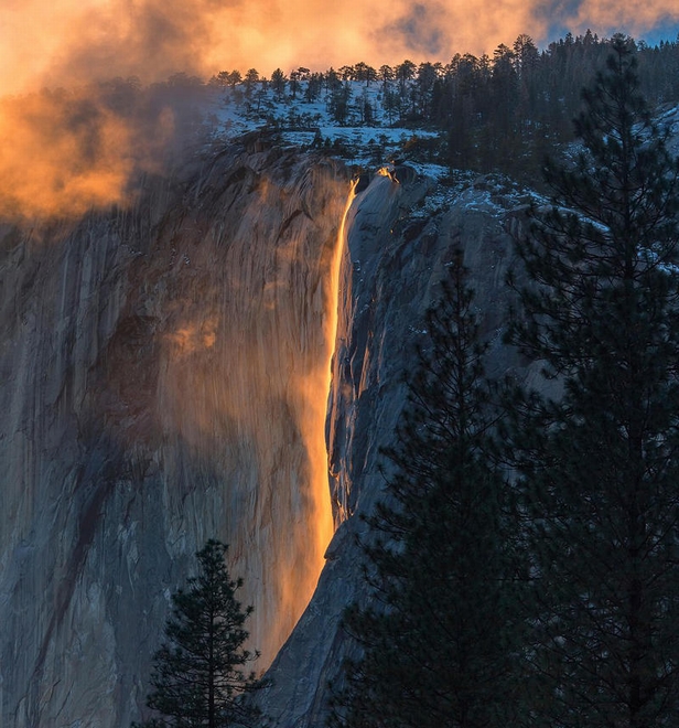 美国约塞米蒂国家公园“马尾瀑布”其实是光造成的幻觉。