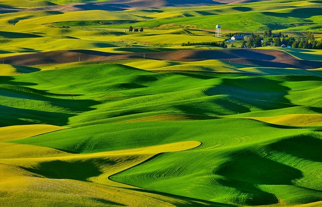 美国华盛顿州连绵起伏的丘陵,在合适的光线下看起来像油画。