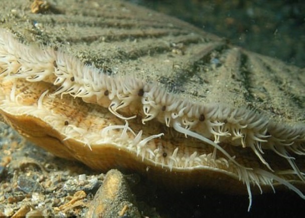 扇贝常常被当作美食食用,不过你知道吗,一个看起来平凡无奇的扇贝,竟然拥有200只眼睛,而每个眼睛后方都有多层的凹透镜,凹透镜还会再连接上一块方型晶体,使影像能够打到两层不同功效的视网膜上,让扇贝的视力能像望远镜般一样卓越。