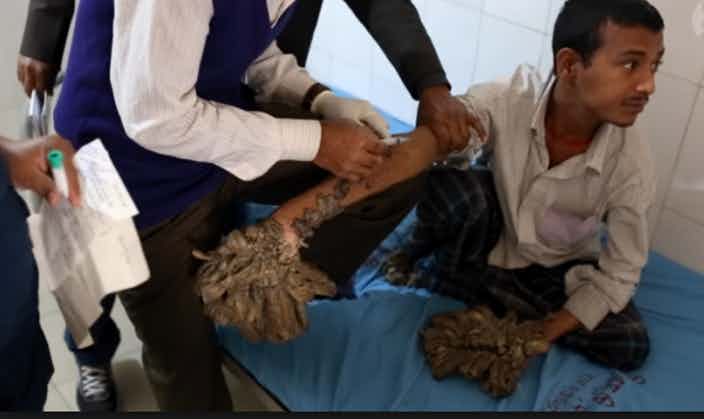 这种疾病是因为皮肤发育不良导致病变和损伤的罕见皮肤病症。通常患者会有较弱的免疫系统,容易罹患各种疾病,特别是人类乳突病毒,当这种患者感染人类乳突病毒时,会导致长出鳞片般的皮肤。而这些患者也常被称为“树人”,目前还没有可以完全治愈的办法,但医生们可以提供一些药物治疗减缓肿胀及缓解疼痛。
