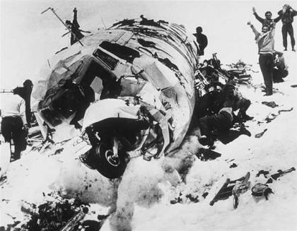 1972年一架飞往智利、载着45名乘客和机组人员的飞机,因碰上恶劣天气偏离了航线,最后坠毁在安第斯山脉。12人当场死亡。在事发后长达72天的这段时间内,政府当局一直以为没有生还者,所以并没有积极救援。