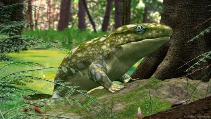 它们由鱼类进化而来,其中一些的鳍慢慢演变成肢体,使它们能够在陆地上纵横驰骋。然而大灭绝的悲惨经历使它们其中一些物种再也不想回到水里,因而变成了旱鸭子。