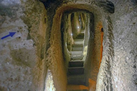 一条狭窄的楼梯通向德林库尤地下城。(Shutterstock)