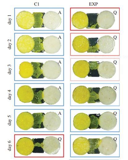 因此,研究人员想知道:当一个由令其不悦而最终无害的物质形成的障碍物,被放置于黏菌和食物之间时,霉菌会如何反应。