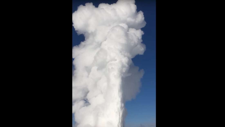 如同美国广播公司(ABC)新闻报导,老忠实喷泉,在黄石国家公园著名的愤怒水柱,正忙着做日常工作。每44到125分钟,它累积足够的压力,把超热的水射到空气中。就在地面下方22公尺(72英尺)处,水温大约为118℃(244°F),而且在它爆发到地面上时,它经常保持这个热度。
