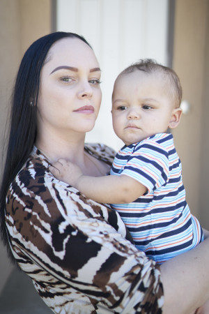 洁西卡在一对中国情侣答应付她3万元美金后成了一位代理孕母。(加州是美国少数允许女性靠代理孕母赚钱的州)