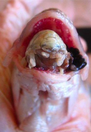 然而,对于鱼类来说,缩头鱼虱可不是什么善类,它们会利用体型的优势,巧妙穿过鱼鳃钻进鱼体,接着用锋利爪子钩住鱼舌,全身攀附上去,咬穿宿主舌头上的血管,开始吮吸血液。不久之后,血流不止的舌头开始萎缩,最终脱落,缩头鱼虱藉机取代舌头的位子。