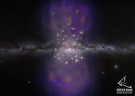美国国家科学基金会的绿堤射电望远镜(Green Bank Telescope)发现,成群结队的氢气泡从银河系中心飞出,时速为100万公里。