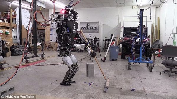 谷歌波士顿动力公司研发的Atlas高188厘米,它现在学会了帮助人们打扫房屋。该机器人曾参加美国军方举办的“机器人奥运会”,它现在可以用真空吸尘器和扫帚打扫房屋,甚至还能将纸飞机扔到垃圾桶里。