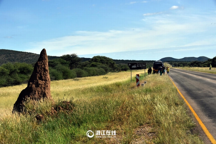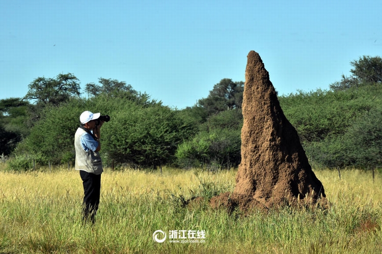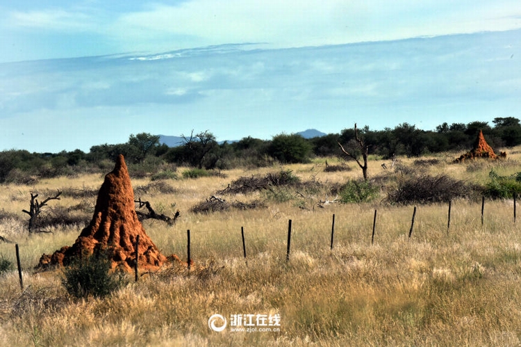 非洲的白蚁世界很有名,记者在非洲的纳米比亚看到各种各样的白蚁山。