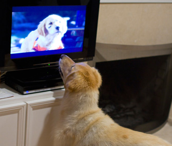 狗,不同于人类,也经常和媒体广告有非常短暂的互动,通常是少于3秒。偏好看一眼电视,而不是像人类专注在电视。研究发现,即使媒体广告是特别为狗设计,大部分的时间它们依然没有在看。因此,对狗来说,理想的电视应该是包含很多的片段,而不是很长的故事剧情。
