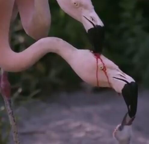 近日在网上疯传一段影片,刚好的“错视角度”让人猛一看以为是一只火烈鸟在攻击自己的同伴。到底是怎么回事呢?答案揭晓,这是鸟类特有的“鸽乳”反刍喂养现象。