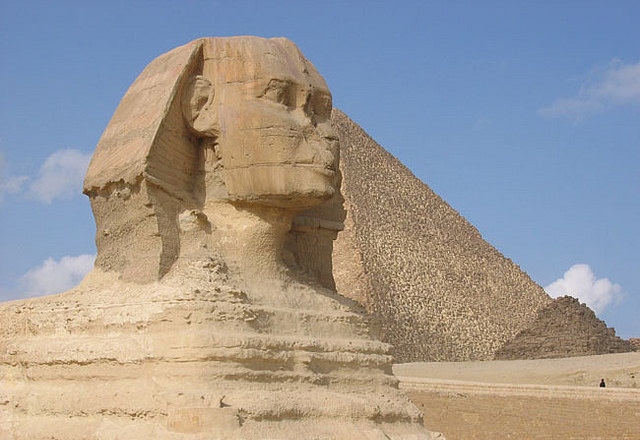 我们完全不知道谁建了人面狮身像(或金字塔),这是我觉得很惊人的事。更有趣的是,根据近期的研究,埃及的人面狮身像可能约有80万年的历史了。此研究发表于索非亚(Sofia)的地质考古学暨考古矿物学国际大会(International Conference of Geoarchaeology and Archaeomineralogy),标题为:“以地质学角度分析埃及人面狮身像年龄之议题”,根据主流学者的研究,这个古代遗迹的年代,可追溯到地球上没有先进文明的时代。不过人面狮身像矗立在金字塔附近,这也比我们原本想的更神秘了。两位专家研究的出发点来自West和肖克(Schoch)所发表的典范转移(paradigm shift)理论,这种“辩论”的目地是要推翻埃及古物学的正统观点,包含了埃及文明可能的起源,以及吉萨金字塔群遗迹的水冲蚀现象。