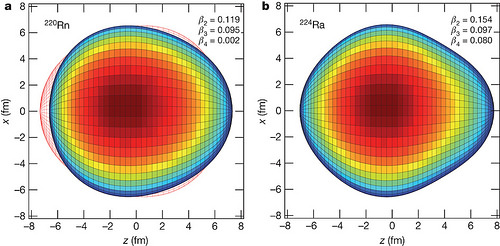 发表在物理评论通讯 (Physical Review Letters)期刊的一项最新研究,科学家证实了一种新的原子核形状。梨形,不对称原子核,首次在2013年被欧洲核子研究组织(CERN)的研究人员在镭224(Radium-224)同位素观察到。