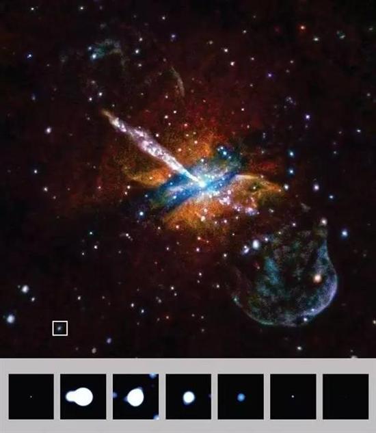 NGC 5128的这5次爆发平均每隔1.8天就爆发一次,周围的宇宙空间被照得一片闪亮。