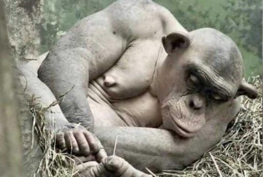 好吧...我还是习惯有毛发的猩猩,没有毛发的猩猩看起来真的有些暴露捏