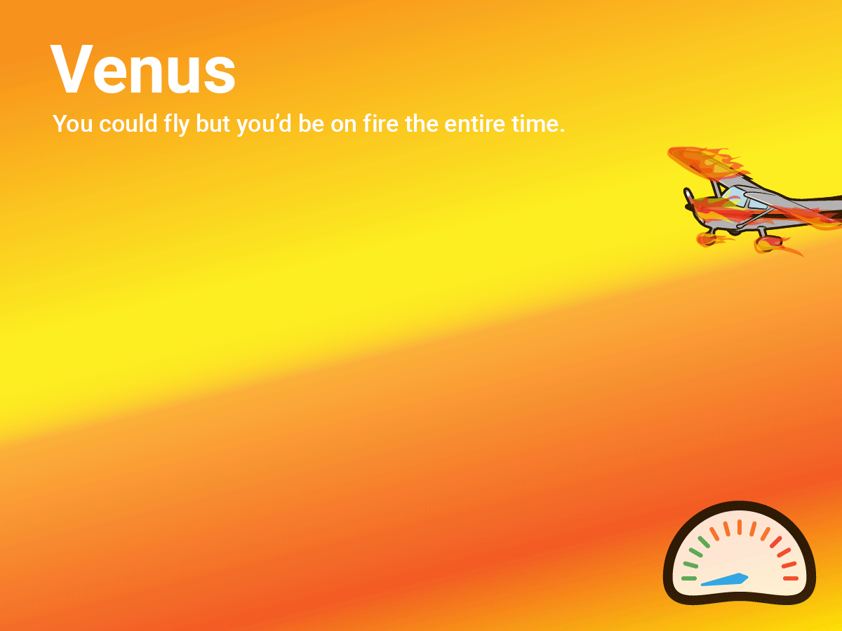 假如你在水星、金星及太阳系内其它行星上开飞机,那么恶劣环境将以各种可怕方式毁灭你和飞机。但具体情形究竟如何?Randall Munroe为你解答如下: