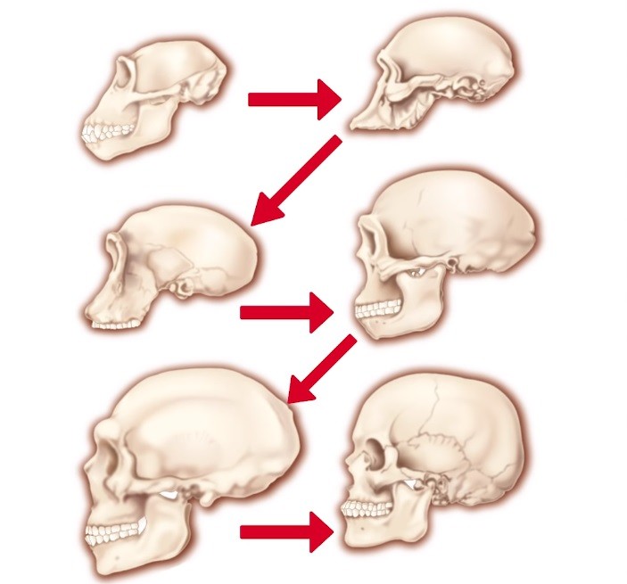 在人类的演化过程中,脸部会变得平坦,和口鼻有关的骨头会向内缩。但舌头和其他脸部的组织需要空间跟脸部的骨头做连结,所以下颚骨的地方就没有向内缩,或是内缩的速度比较慢,就变成我们现在的下巴了。