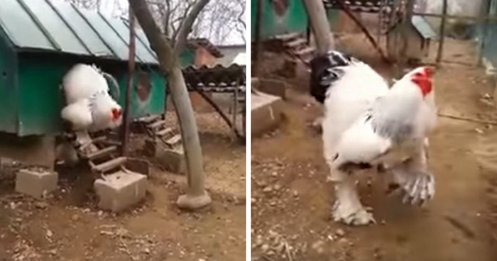 这只鸡的名字叫“婆罗门鸡”,如果说它是鸡中之王应该没有人可以反正,它体重最重可以达到9公斤,完全是正常鸡的4-5倍!也因为它的尺寸真的太大了,所以主人必须要帮它建造特制的鸡舍,再看一次走出来时的气魄真的很吓人啊。如果未来侏罗纪世界里的博士,想不到新暴龙要加什么基因变更强,我唯一推荐婆罗门鸡,绝对会是历代里面最强版本!