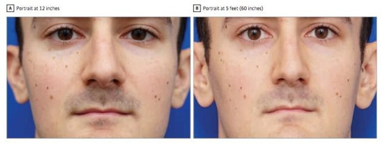以底下这张对比图来看,我们可以秒懂Boris的意思!左边的图是自拍距离30厘米,右边是自拍距离152厘米。对比其他五官,左边这张的鼻子硬是大了30%。