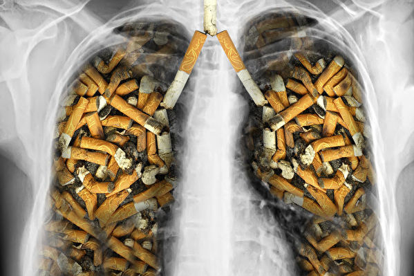吸烟损伤肺部示意图。(Shutterstock)