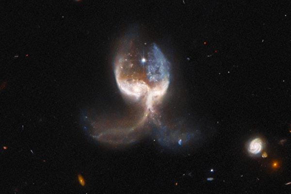 VV-689中的这两个星系看起来就像一对巨大的翅膀。(NASA)