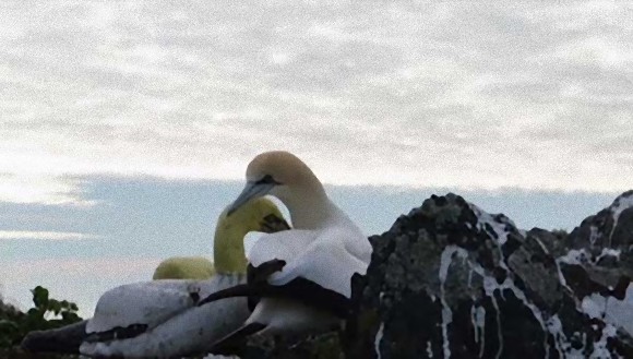 2012年,当地主管单位决定再这样下去不行,于是新增了一项利器。除了水泥像之外,他们加上了鸟叫声的音响,每天对着大海上轮播着塘鹅的叫声。