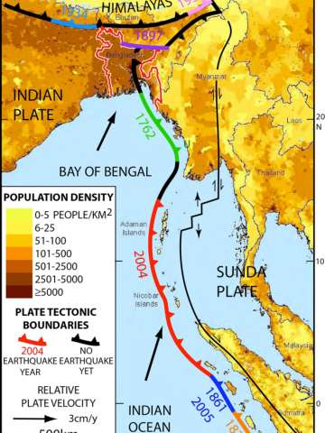 最新鉴定出来的威胁是来自于13年在这个区域的地表监控,这是印度板块与巽他板块会合的地方。 虽然科学家之前就知道这两个板块间有压力存在,他们假设它们只是因为平行的互相挤压:只会造成轻微的地震。