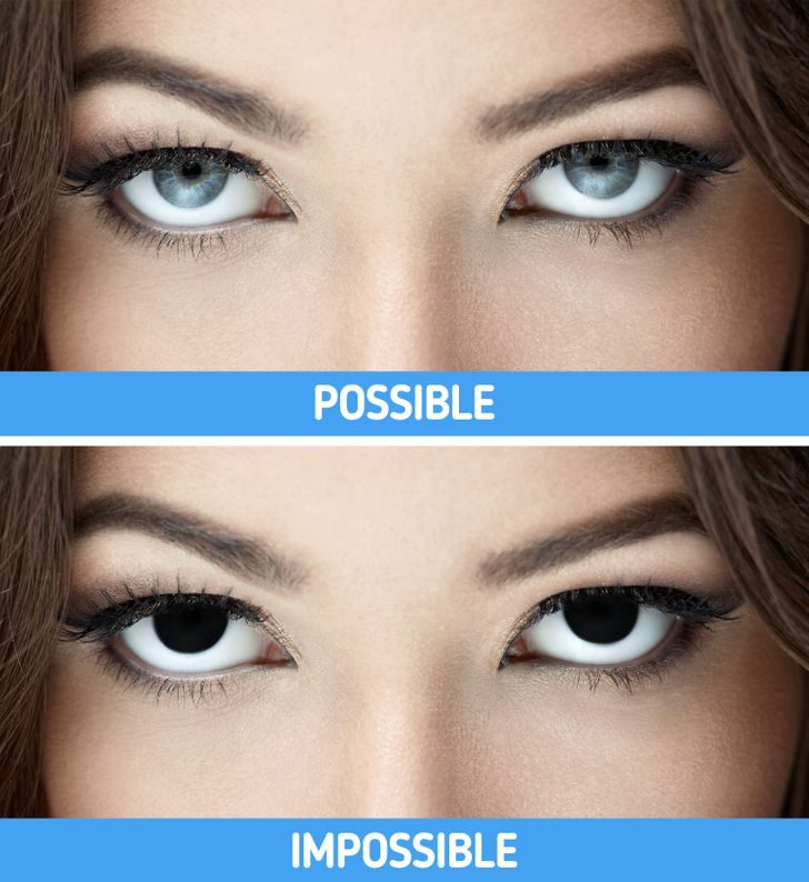 人眼的颜色其实会持续发展与改变,直到我们大约3岁时。不过人眼不可能呈现全黑,有时看起来黑是因为光线的影响、衣物的反射或配戴的变色片。那么为何全黑的人眼只存在于虚构作品中而非现实?这可以从人类的基因说起。