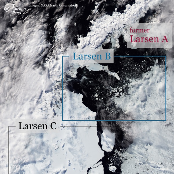 快速背景介绍:Larsen冰棚可分成三个小冰棚: Larsen A、B和C。Larsen A冰棚,在1995年1月就融解了。接着是它旁边的Larsen B冰棚,也在 2002年崩解。拉Larsen C被认为是三者中最大的冰棚,占地约55,000平方公里(约21,235平方英里),大概是冰岛的一半。