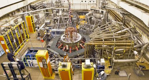 国家球形环实验测试单元,与在中间的tokamak一起升级。(Elle Starkman/PPPL Office of Communications)