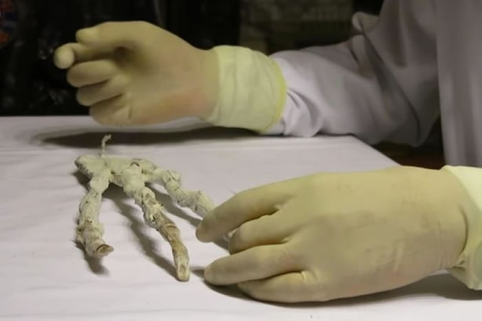 南美洲向来为神秘古文明发源地,关于外星人的传说亦传之不绝。秘鲁一群超自然爱好者近日声称,在古迹马丘比丘附近的库斯科古城,发现一只有3只手指的巨型“外星鬼爪”。鬼爪暂未经科学验证,究竟是真是假,还需进一步鉴定。