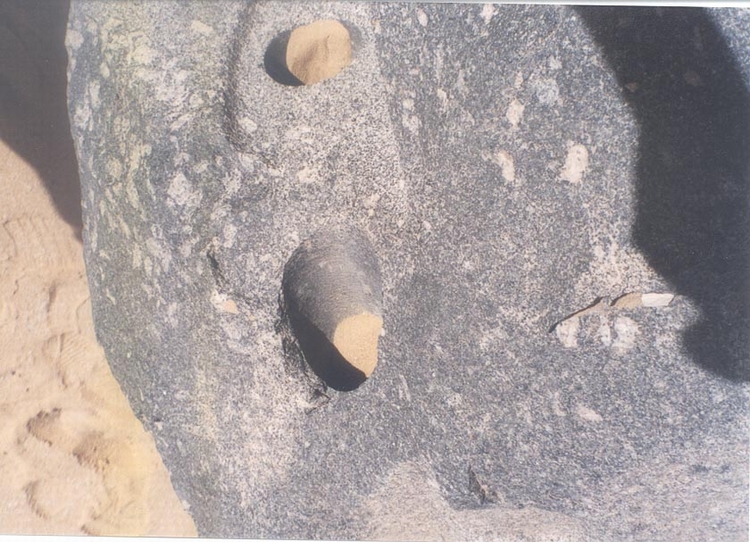 阿布西尔,玄武岩石上的两个钻孔。照片提供者:gizapyramid.com,2007年
