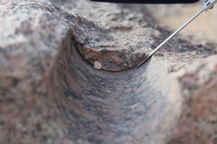 以上照片显示阿布西尔的黑色花岗石遗留的穿孔痕迹。﹝照片提供者﹞